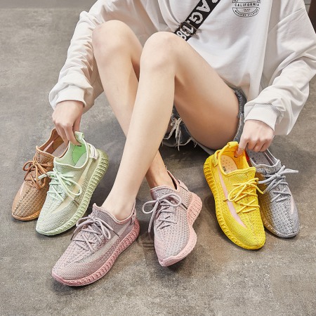 Spring and Summer New Flying Woven Sports Shoes Female Breathable Student Running Casual Sneakers
