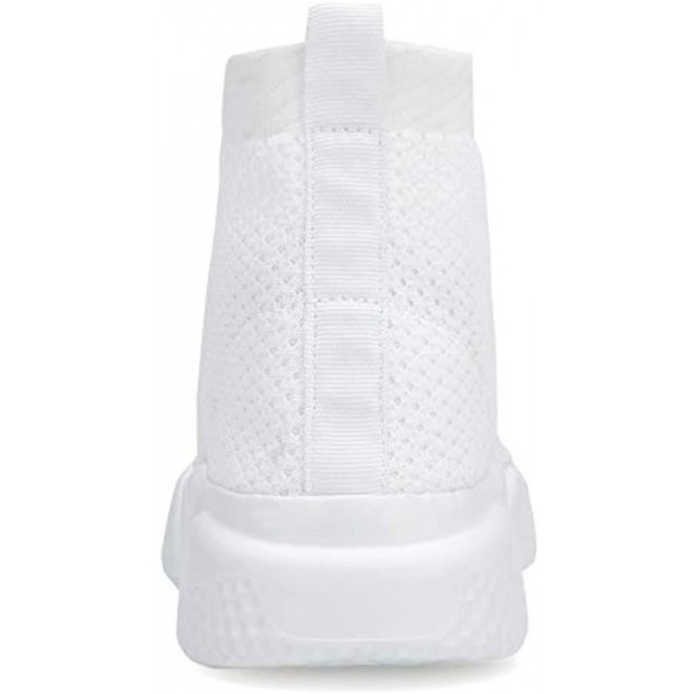 Men's Running Shoes Breathable Knit Slip On Sneakers Lightweight Athletic Shoes Casual Sports Shoes High Top White